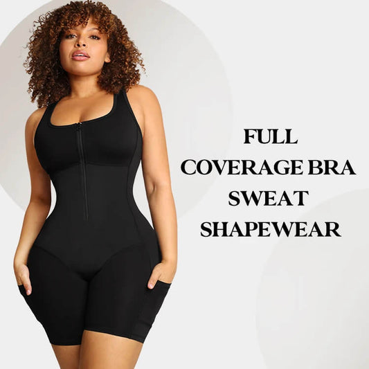 Women’s Sauna Sweat Shapewear – Full Body Slimming Tummy Control Garment with Pockets